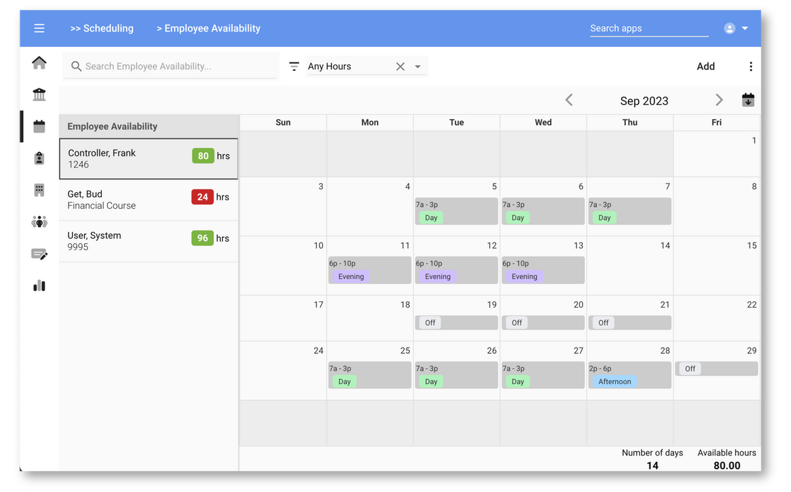 Schedules & Availability. A group of apps for creating and managing worker schedules. For dynamic environments, workers can submit availability to assist with the scheduling process.