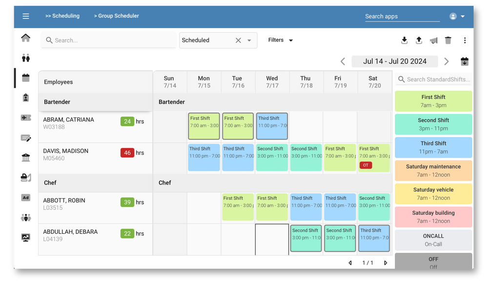 Worker Scheduling. Create ad-hoc or repeating schedules for workers, including scheduled lunch breaks, expected overtime and assignments.